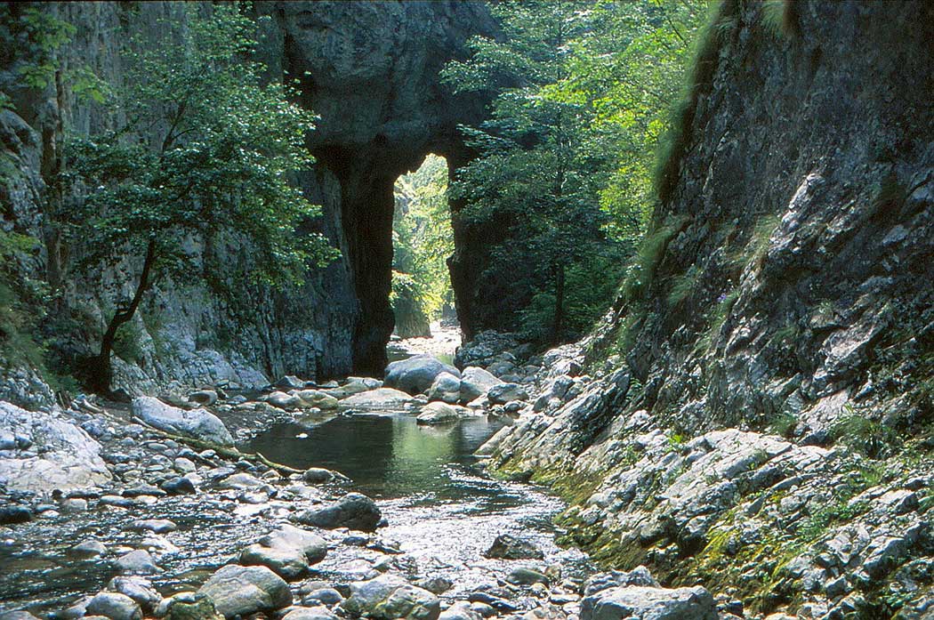 Der Fluss führt an gewaltigen Kalksteinfelsen vorbei zur Râmeţ-Schlucht.