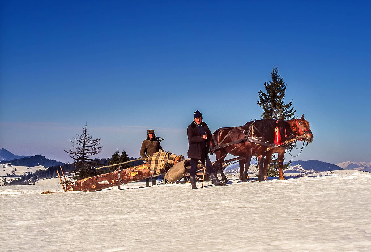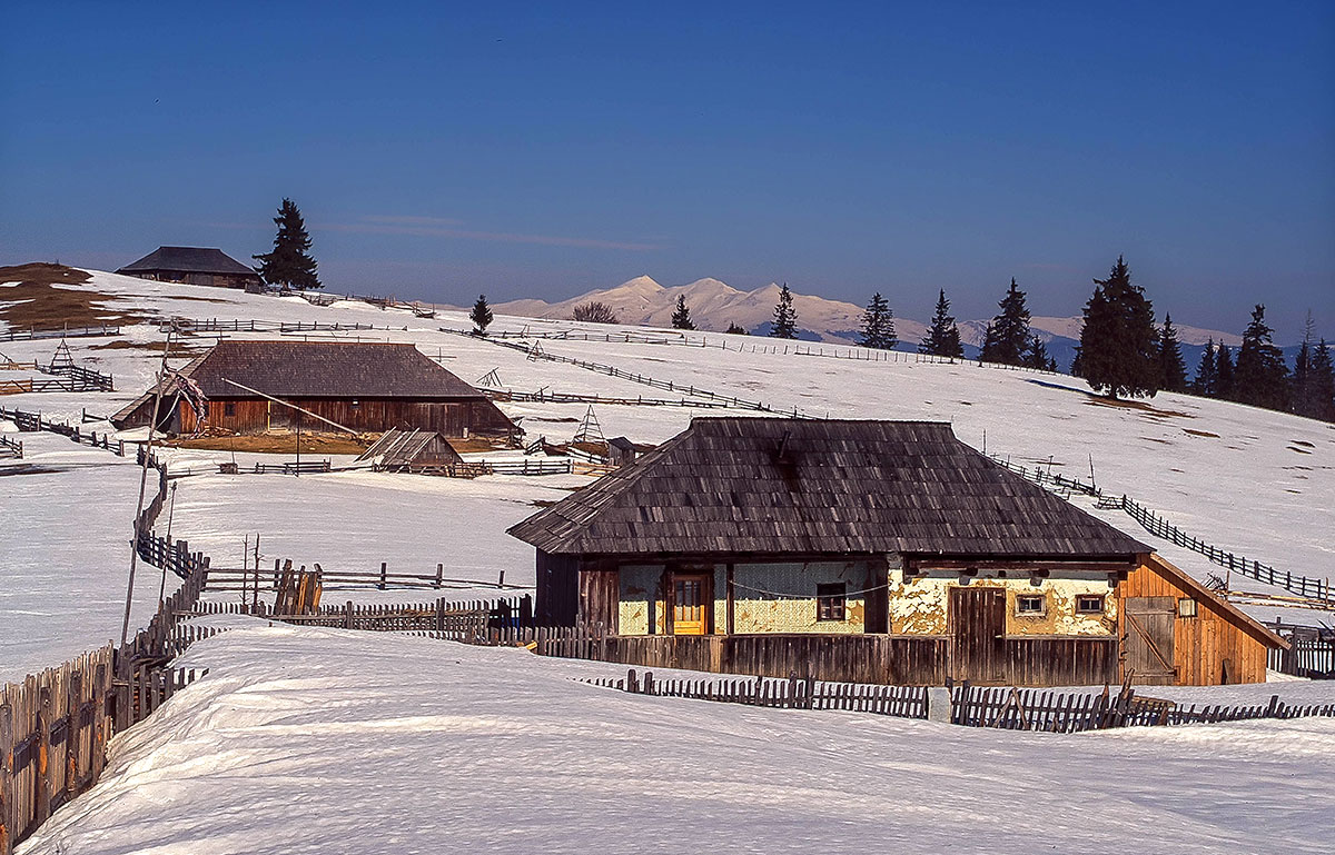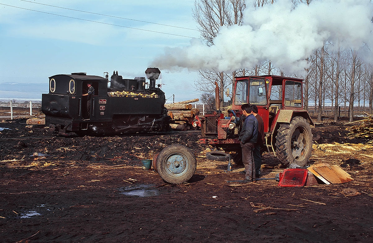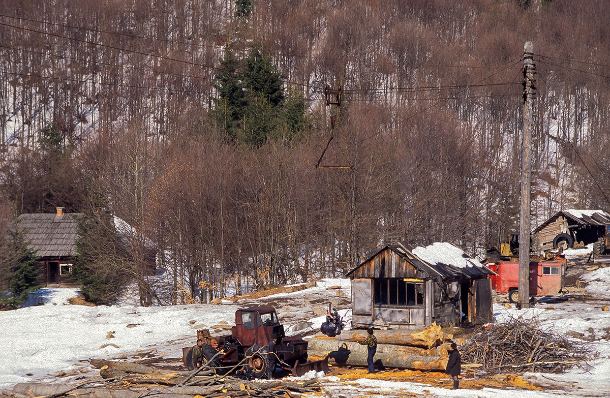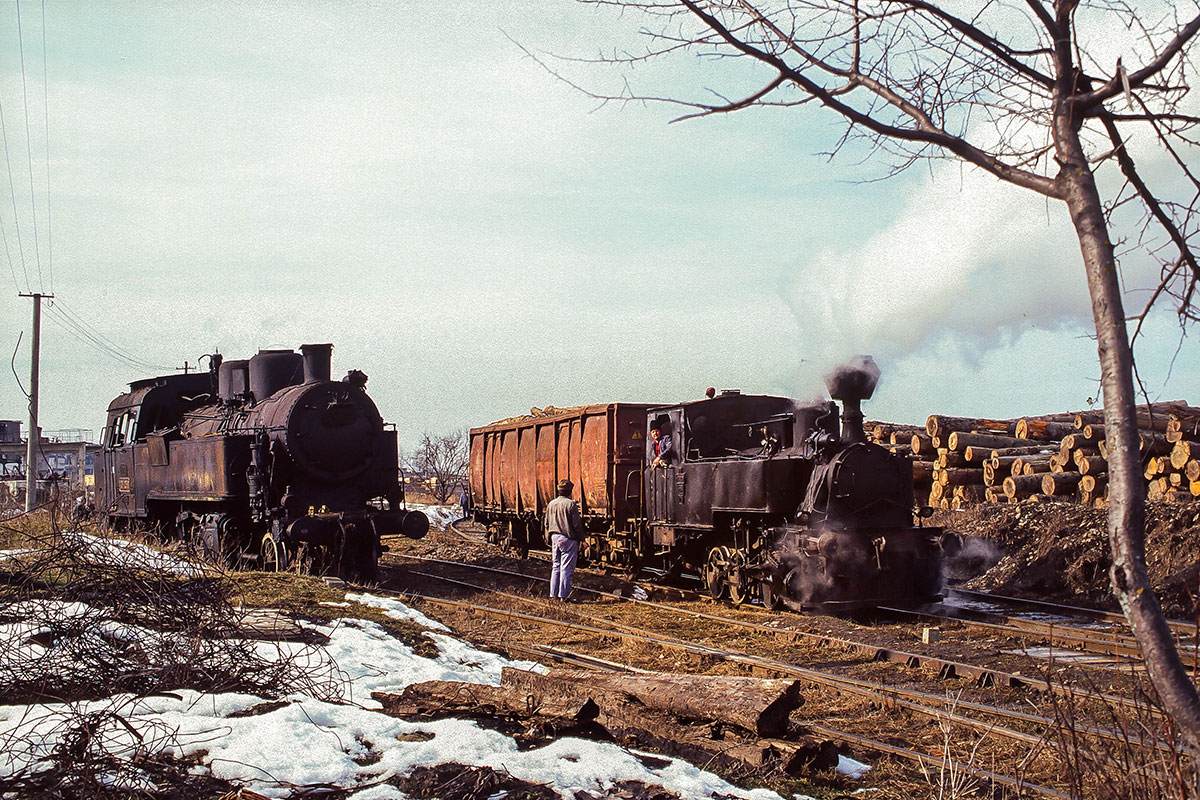 Band war Abzweigbahnhof. Auf dem Streckenast nach Miheşu de Câmpie entstand am 28. Februar 1997 diese Aufnahme.Angesichts der Offroadqualitäten der parallel zur Bahnlinie führenden Landstraße war ab diesem Punkt der Zug schneller als wir, so dass wir die Zugverfolgung abbrechen mussten (28.02.1997).Die Verschlafenheit auf dem Tihuța-Pass am 1. März 1997 ließ erahnen, wie es in den Alpen vor 100 Jahren vielleicht gewesen sein könnte.Bergbewohner am Tihuța-Pass.Auf der Nebenstrecke von Vama nach Moldovița herrschte am 2. März 1997 noch reges Fahrgastaufkommen.Nachdem wir am 2. März die mit Eisplatten und Schnee bedeckte Straße auf der dicht bewaldeten Südseite des Prislop-Passes bezwungen hatten, legten wir nach erfolgreicher Bergfahrt am Scheitelpunkt auf 1416 m Höhe eine kurze Pause ein. Die anschließende Talfahrt gestaltete sich weit unproblematischer, denn auf der Nordseite hatte aufgrund des fehlenden Waldes die Sonne die Fahrbahn relativ gut abgetaut. Zu Gast bei Waldeisenbahnern in Valea Scradei.Auf der Wassertalbahn verlässt am 3. März 1997 der bergwärts fahrende Zug den Bahnhof Faina.Der Zug in Câmpu Cetății brauchte am 6. März 1997 für seine Bergfahrt mächtig Dampf. Heute ist hier ein breiter Forstweg.Am Endpunkt der Waldbahn Câmpu Cetății diente die Kabelkrananlage der Motorreparatur eines Forsttraktors (06.03.1997).
