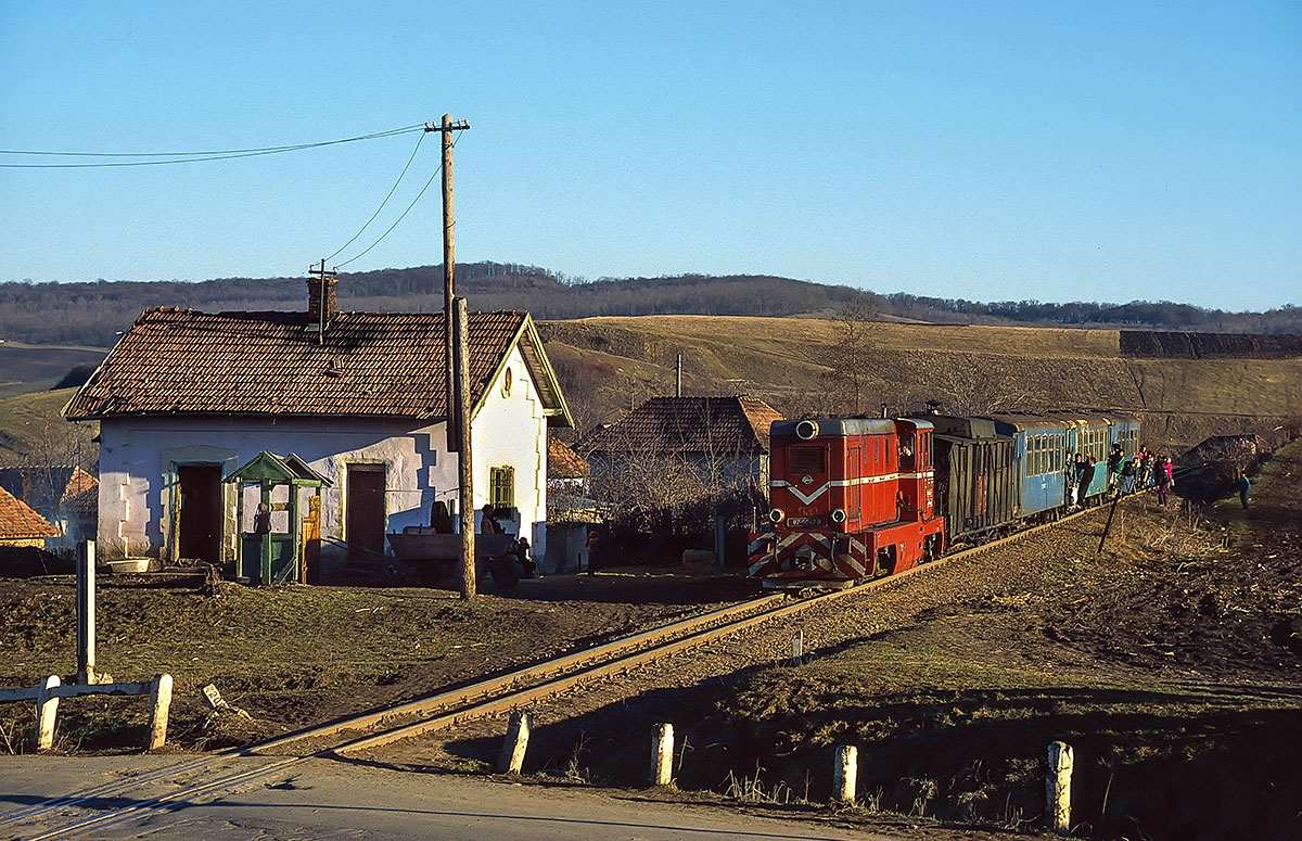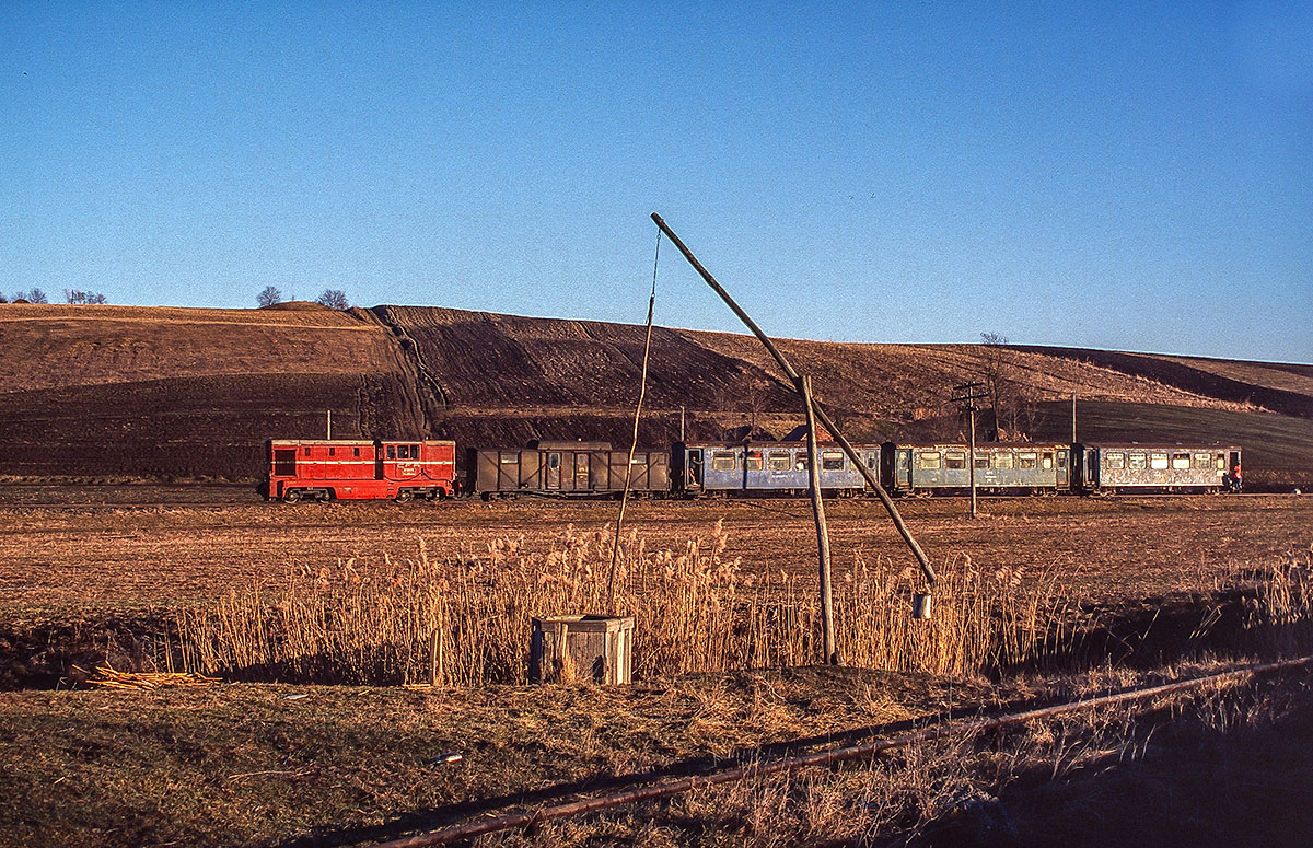 Weiter ging es nach Câmpu Cetății. Dort hatten wir die Möglichkeit, bei einem Lokführer zu übernachten. Prinzipiell war die dortige Waldbahn in Betrieb, aber ein Zug solle erst wieder in zwei Tagen fahren. So machten wir als Ausweichvariante ein paar Bilder von den Staatsbahnschmalspurstrecken von Târgu Mureș nach Sovata und nach Lechința. Aus heutiger Sicht muss man sagen, dass genau diese Aufnahmen von der "Maros-Tordaer Kleinbahn" die letzte Gelegenheit waren, denn noch im gleichen Jahr wurde dort zum 1. Juni der Bahnbetrieb eingestellt. Am übernächsten Tag stellte sich heraus, dass demnächst doch kein Waldbahnzug in die Berge fuhr.