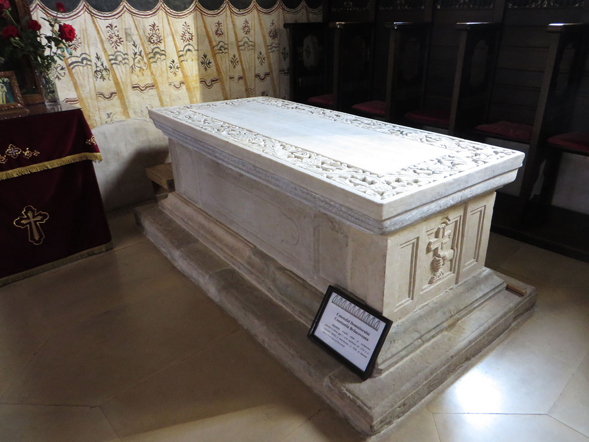 Mit diesem Bauwerk hat Fürst Brâncoveau Gott ehren wollen. Hier wollte er auch seine letzte Ruhe finden. Doch der im Vorraum der Klosterkirche befindliche Sarkophag aus Marmor ist leer!